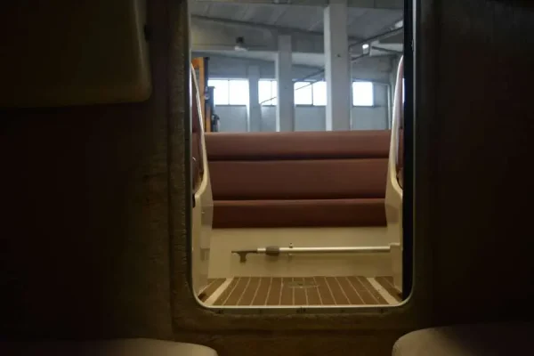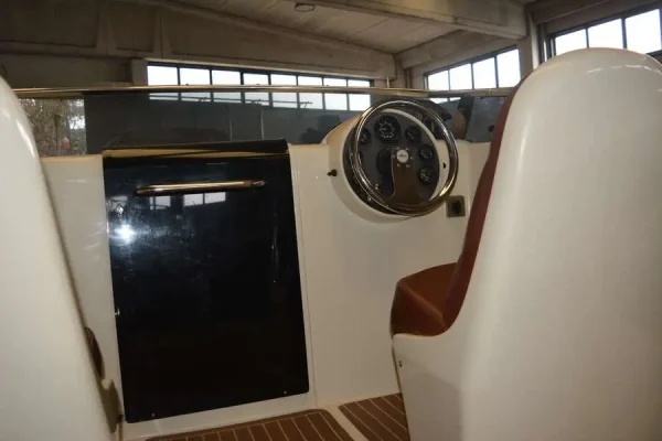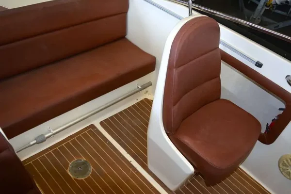 Spazi generosi, pozzetto ampio con pavimento in teak. Ampio prendisole a poppa con cuscino nuovo.